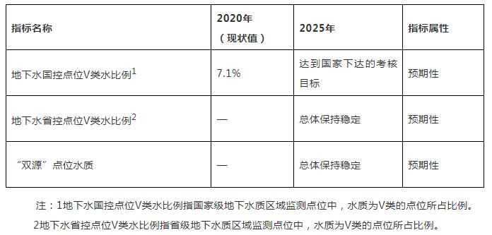到2025年,全省地下水環(huán)境質量總體保持穩(wěn)定(表1)。到2035年,全省地下水環(huán)境質量總體改善。
