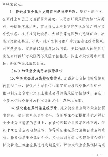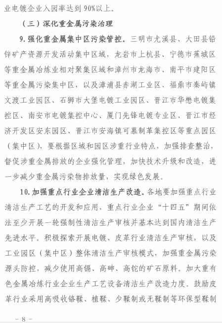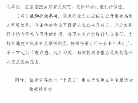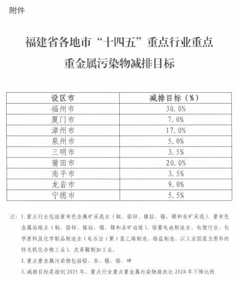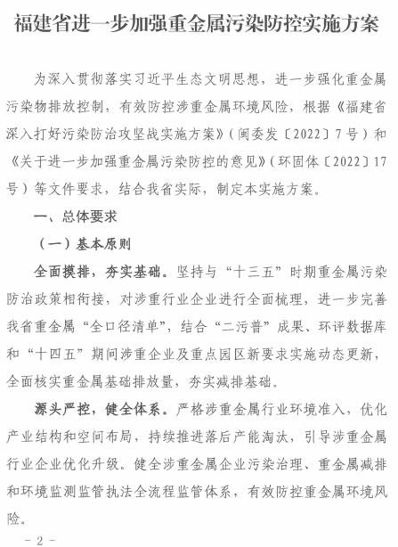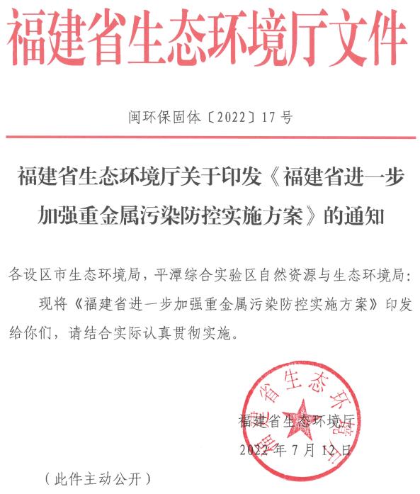 福建省發(fā)布進一步加強重金屬污染防控實施方案